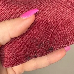 Only call out is tiny black marks on bottom/back of right sleeve cuff, will come out if treated. Not noticeable when wearing.