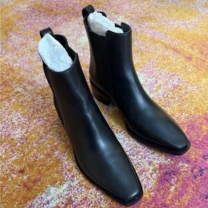 Experience the perfect blend of style and comfort with Vionic's black ankle booties. These sleek Chelsea-style boots feature a minimalist design with elastic side panels for easy slip-on wear. Crafted with a polished finish, they are ideal for both casual and formal occasions.