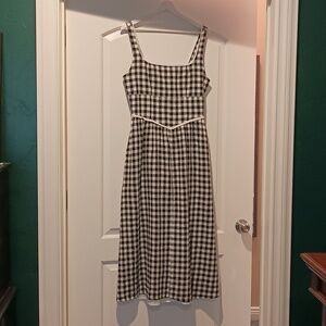 Flat, elastic neckline with adjustable straps Gathered shirring with elastic waist Hidden on-seam pockets Tiered skirt with shirring