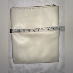 Elegant zipper pouch by Rachel Pally. Beige interior with red accents. Ideal for organizing small items.