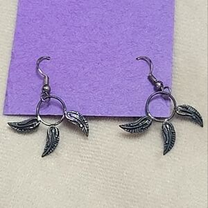 dreamcatcher silver tone leaf dangle earrings. Perfect for any occasion. in used condition. see pics for details of condition and measurements. no makers mark