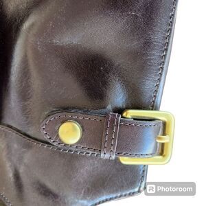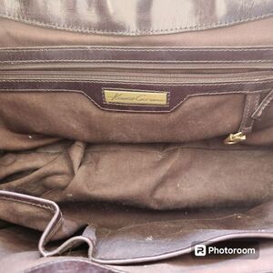 Brand: Kenneth Cole New York Size: Medium/Large Handbag Color: Espresso Brown, gold accents Style: Top Handle sanddle/hobo leather hand bag with gold clasp Condition: Preloved, excellent used condition, no rips, flaws or stains