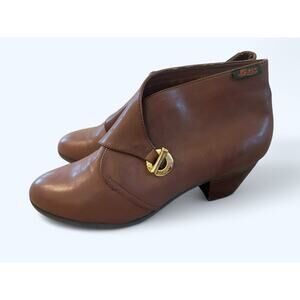 Vintage GH Bass Women's Gold Toggle Cognac Brown Leather Ankle Boots 9 W Classic