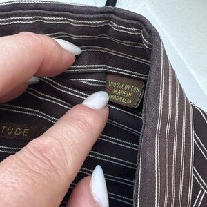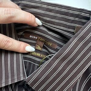 BCBG Brown Casual Button Down Shirt with Stripes