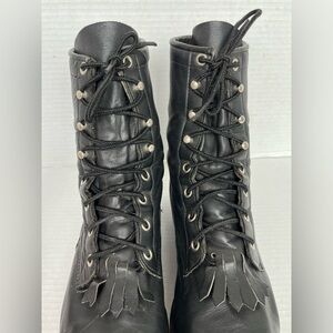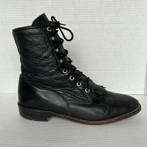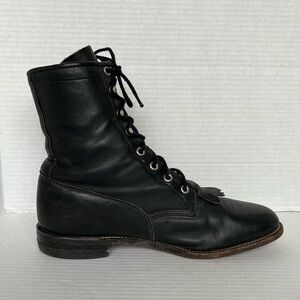 Justin Western Roper Kiltie Boots Women Size 9 B Black Leather Lace Up L0620. Good used condition. Shows some wear see photos for reference.
