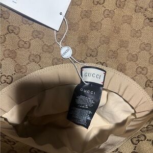 Gucci oversized canvas hat with signature monogram design. Elevate your style effortlessly. This is a women’s oversized canvas hat, similar to bucket but more coverage from the sun. I have attached photos from their website so you can see the style and size when worn. Paid $799 at Nordstrom in 2023 asking $175 obo. Comes with box. No stains no picks, pet free and smoke free home.