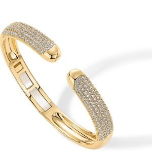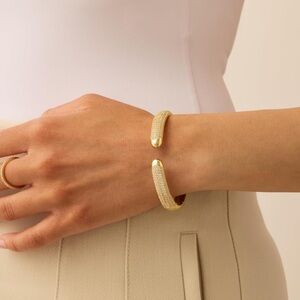 This stunning cuff bracelet features a luxurious gold finish with sparkling crystals accents. Perfect for adding a touch of elegance to any outfit.