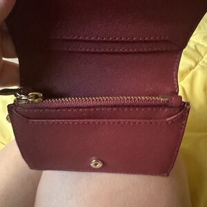 Chic card holder by Kate Spade. Deep red color with gold logo accent.