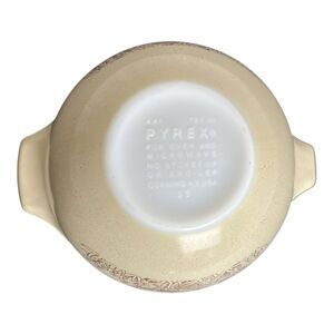 This set of 4 vintage Pyrex Forest Fancies Mushroom Cinderella Nesting Mixing Bowls is a charming addition to any kitchen. With a lovely forest fancies pattern and charming mushroom design, these round glass bowls are oven and microwave safe, making them perfect for all occasions. Made in the United States during the 1980s, this set includes 4 nesting bowls that are easy to store and stack. Hand wash only to maintain their original vintage condition, these Pyrex bowls are a nostalgic touch to your cooking and baking experience.