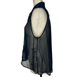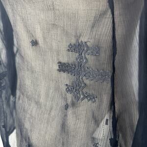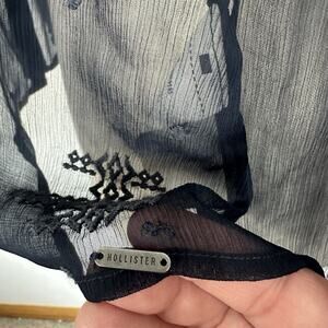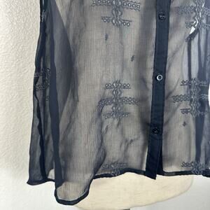 Hollister Y2K Top Womens Small Navy Blue Sheer Sleeveless Embroidered Boho 2010s