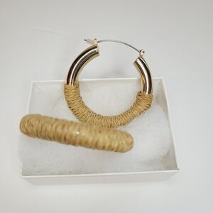 2 Pair Forever 21 Silver Earrings Gold with Hemp Rope Wrap And Silver Heavy Cute