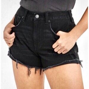 American Eagle MIDI Denim Shorts Frayed Hem Black Next Level Stretch