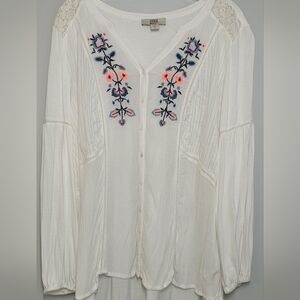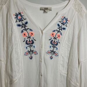 Vintage America White Embellished Long Sleeve Blouse 1X