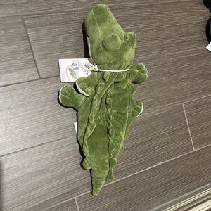 Soft green plush alligator toy. Perfect for cuddling and play.