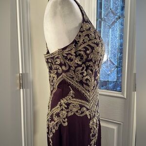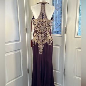 Dancing Queen Purple and Gold Embellished Halter Gown