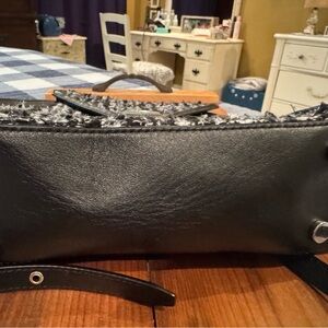 Elevate your style with this chic black and white tweed backpack. Perfect for any occasion, this bag combines elegance with functionality. The sleek design and classic colors make it a versatile addition to your wardrobe.