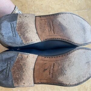Like new maybe wore a few times, size 10D and forgot about it.Final selling , step out in style with these sleek navy (I think dark navy not black) leather loafers. Perfect for any occasion, these shoes offer both comfort and elegance.I’m women 11Wide and it’s big on me. I’m not sure if this is the right shoe box for these pair.