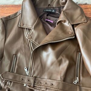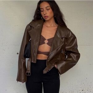 LIONESS BROWN/CAMEL CROPPED FAUX LEATHER JACKET
