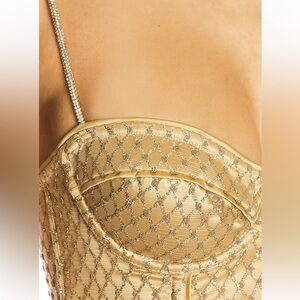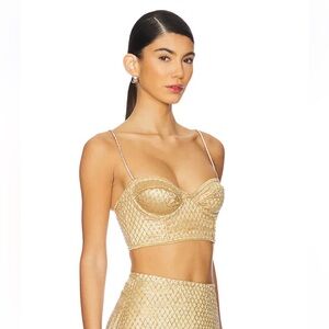 For Love & Lemons Glitter Grid Bustier Top in Gold NWOT Size S
