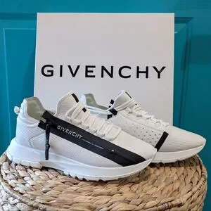 Like new! Authentic Givenchy Spectre Runner Zip sneakers made of 100% calf leather. White with black accent. Comes with box and individual storage bags for each shoe. Size 43. photo included of authentication certificate