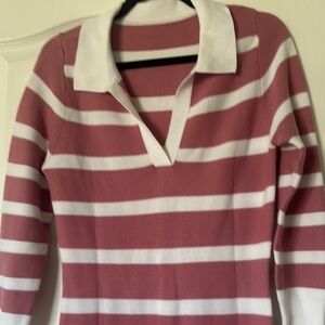 This stylish striped dress features a chic pink and white design, perfect for any occasion. Its comfortable. Women's Fall Sweater Dresses 2024 Stripes V Neck Long Sleeve Side Slit Bodycon Dress