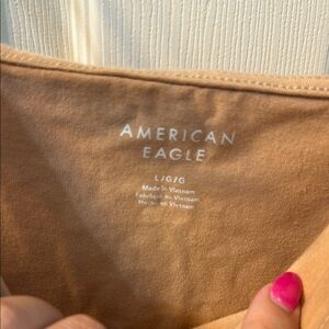 This chic tan one piece is perfect for your wardrobe. Comfortable and stylish for any occasion. This is a size large and new with tags.