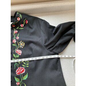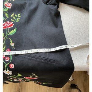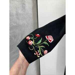 VICTOR COSTA vtg 90s Women Coat 2X Black Embroidered Flowers Button up Longline