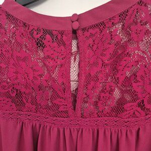 Torrid Womens Burgundy Lace Yoke Blouse Short Flutter Sleeves Button Back Detail