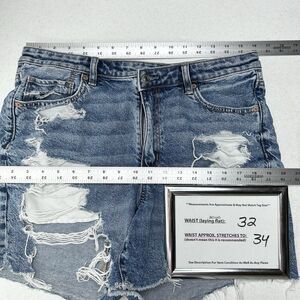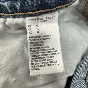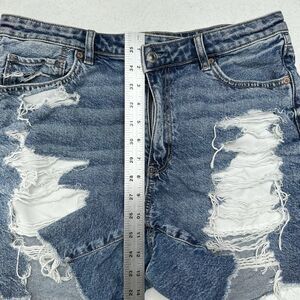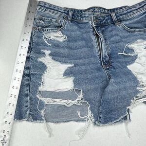American Eagle Shorts Womens 14 Highest Rise Baggy Midi Length Blue Jean Denim Medium Wash Distressed Grunge Punk Ripped