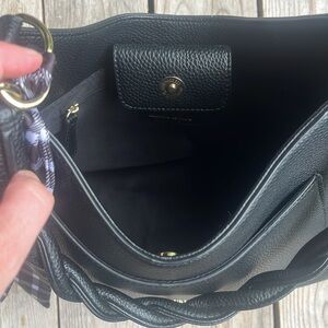Nanette Lepore Vegan Leather “Annette” Shoulder Bag - Black With Checkered Scarf
