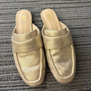BRUNCH DATE MULE BC Footwear BRUNCH DATE MULE size 9 Gold Distressed Born in California Condition: like new. Dark dot on one shoe. Bundle and get a discount! Smoke free home. These cute open-backed flats give an unexpectedly modern twist to the classic apron toe loafer. With an extra cushy padded upper, puffed saddle strap, and moccasin style stitching, these slip-on mules will add an easy and effortless cool factor to any look 100% Vegan Heel Height: 0.5” Material: Synthetic Fit: True to size Toe Shape: Round Slip-on style
