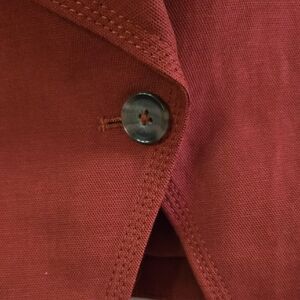 This elegant blazer from White House Black Market features a rich red hue and a sophisticated shawl-style collar. Its fitted silhouette and 3/4 length sleeves offer a modern, professional look, making it ideal for office wear or special occasions.