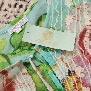 NWT Debbie Katz South Beach Blue Floral Tunic Cover Up Cotton Tropical Dress S