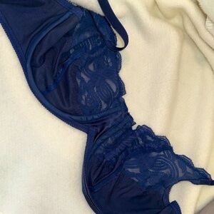 Vintage CHRISTIAN DIOR Midnight Blue Lace & Satin Balconette BRA 36D style 4279