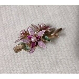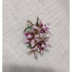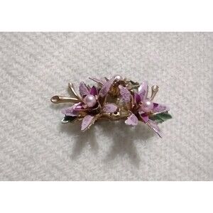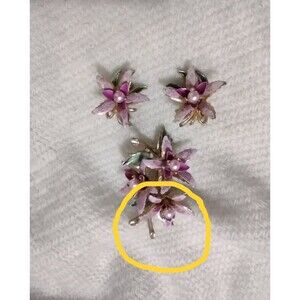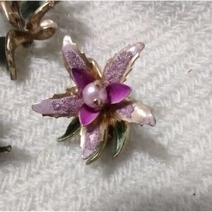 Vintage 1950s Lilly Rose Brooch Pin Earring Set - Purple Enamel Flowers & Pearls