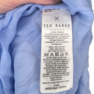 Elegant blue and white midi dress with poppy floral pattern. Featuring dainty white side ties, button front and ruffle detailing. Fabric is very soft and delicate. Gorgeous spring and summer dress. Perfect for church, weddings, bridal showers, baby showers. Ted Baker size 0, equivalent to a US size 2. In wonderful condition.