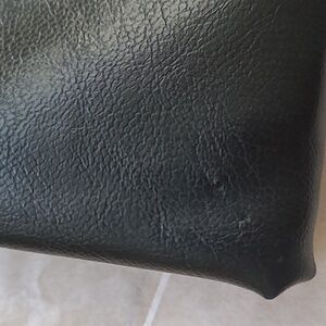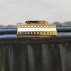 This elegant black leather clutch is perfect for any occasion. Its sleek design and classic color make it a versatile accessory for your wardrobe. perfect and clean except one tiny price tag hole. See picture.