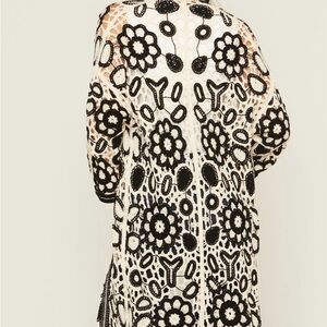 POL Black and Cream Floral Crochot kimono Cardigan