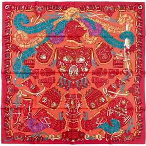 "Standards and Banners" was designed by Annie Faivre and first released in 1984. 90cmx90cm (35"x35") made in France. 100% silk. *A box will be provided, but not an Hermès box for this one.