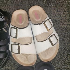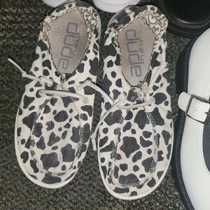 checkered vans slip on, cow print hey dude, fabkids mary janes, madden black sandals, fabkids gingham sandals, fabkids white sandals (all size 1 except white sandals are 13) 4/6 are unworn.