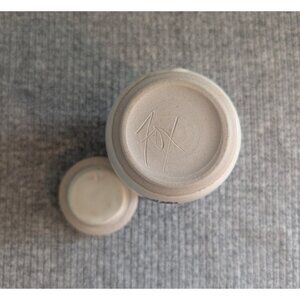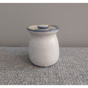 Handmade Pottery Jar/Canister with Lid, Wheat/Reed Design, Signed "Fox". In excellent used condition with no damage or defects noted. Measures 2 7/8" diameter, 3.5" tall.