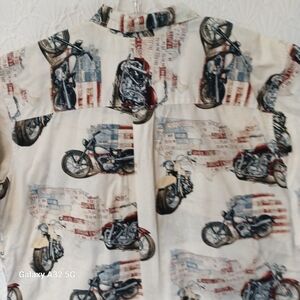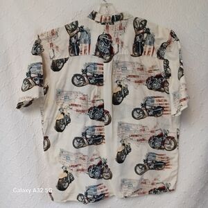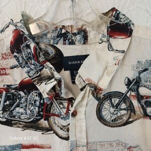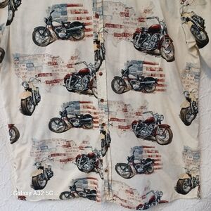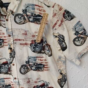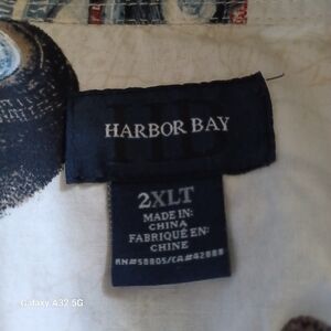 Harbor Bay Cream and Red Casual Button Down Shirt Size 2XLT