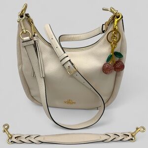 ⭐️SOLD⭐️ Coach Jules Hobo Crossbody in Chalk Leather with Cherry Charm 🍒