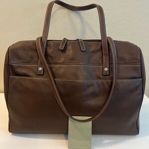 Sophisticated Levenger duffel bag in rich leather. Ideal for travel or daily use. Features sturdy handles and sleek design.