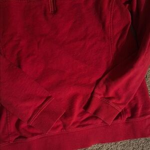 Stay warm and stylish with this vibrant red quarter-zip sweatshirt. Perfect for any casual outing. Gorgeous sweater inset on the shoulders with snowflakes gives a very Nordic holiday vibes worn a handful of times machine washed cold water hung dry ships from a smoke free dog friendly home.