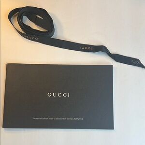 Gucci Women's Fashion Show Collection booklet. Features a sleek black cover.