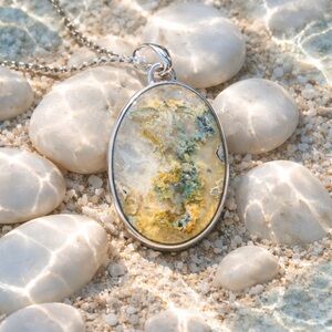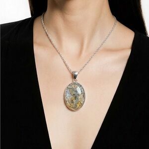 Natural graveyard plume Agate and solid 925 sterling silver pendant necklace