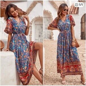 The Savanna Jane Embroidered Boho Velvet Kimono Sleeve Top in size M/L is a stylish and comfortable blouse perfect for casual occasions. This floral patterned top features a V-neckline, short kimono sleeves, and a pullover closure. Made from a blend of polyester and spandex, the beige color adds a touch of elegance to the overall boho chic look. The embroidered accents enhance the design, making this top a unique addition to any woman's wardrobe, ideal for those who appreciate the brand's quality and style.