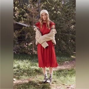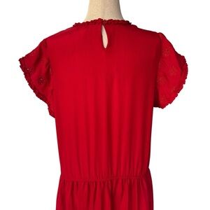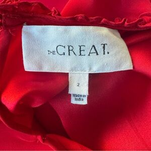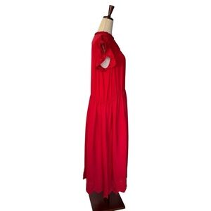 The Great. Moonlight Embroidered Red Silk Midi Dress sz 2 Medium