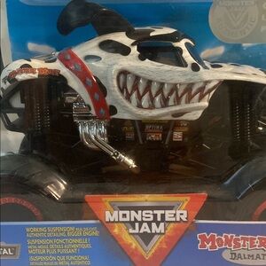 Experience the thrill of Monster Jam with this black and white toy truck, featuring oversized wheels and a raised suspension. Perfect for fans of cars and vehicles, this collectible model captures the authentic details of real monster trucks.